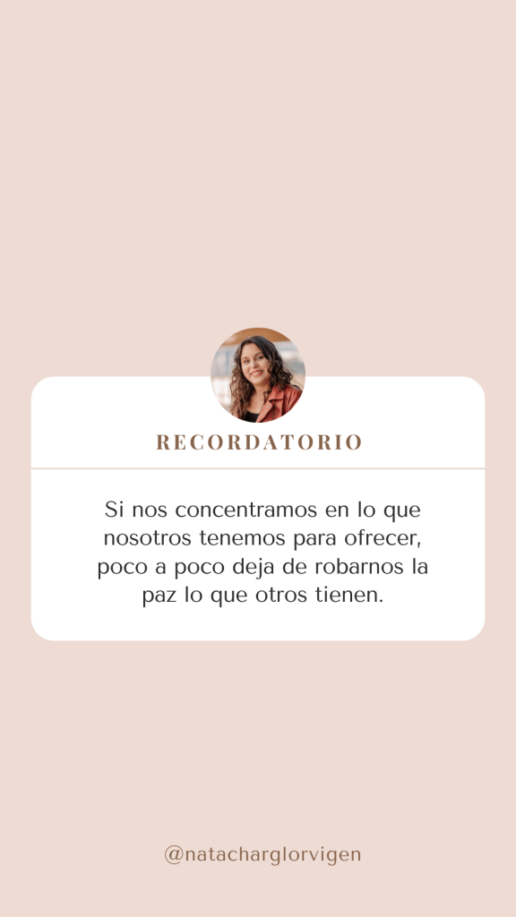 Si nos concentramos en lo que nosotros tenemos para ofrecer, poco a poco deja de robarnos la paz lo que otros tienen. Nos sentimos en movimiento en vez de estancados.