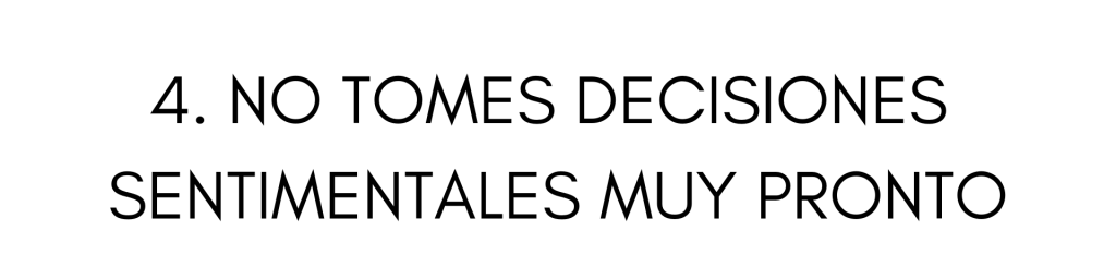 Si eres tú quien termina la relación, quizás te haces preguntas como: “¿Me equivoqué?” “¿Deberíamos volver?” “¿Me apresuré?” “¿Lo manejé bien?”, etc. Y, aunque creo que llegará el momento de evaluar la decisión que tomaste, mi opinión es que ese momento no es tres días después de haber terminado. Quizás cuando te sientas solo/a por primera vez querrás correr a buscar a la otra persona. Pero ¿la buscas porque de verdad es lo mejor o solo porque extrañas tener compañía? Esto NO es fácil de responder. Son preguntas duras, rudas y que, en el momento, se sienten crueles, pero son necesarias.