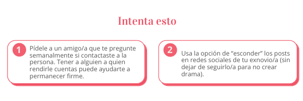Cada situación es única, claro. A veces, el contacto es inevitable. Pero, sí podemos escoger no stalkear en redes sociales, por ejemplo, o no escribir mensajes. La sanidad emocional que necesitamos usualmente empieza en el momento en que decidimos darnos mutuamente espacio para sanar. Si acaso tú eres quien terminó la relación y ya no tienes sentimientos por la otra persona, tal vez no veas la necesidad de mantener la distancia; pero eso no significa que tu expareja no lo necesite. Mantener contacto puede confundirle y hacerle creer que hay posibilidad de volver, y si esas no son tus intenciones, mantener la comunicación es un poco egoísta. Aunque parezca duro, cero contacto es el mejor contacto.