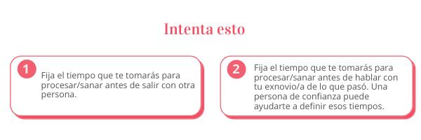 También, me parece prudente que nos tomemos un tiempo antes de salir con alguien más; y eso aplica para ambas partes en la ruptura. Sé que otras personas opinan diferente. Conozco amigos que, de verdad creen que “un clavo saca otro clavo”. Y tal vez haya gente en el mundo a las que no les moleste ser “el otro clavo”, pero me parece un poco injusto que esa sea la razón que te mueve a buscar a alguien más. En mi humilde modo de ver las cosas, es preferible estar emocionalmente estable antes de salir con otra persona; terminar bien un capítulo antes de comenzar el nuevo. En oración y en conversación con gente de confianza, puedes decidir con Dios qué es lo mejor para ti.